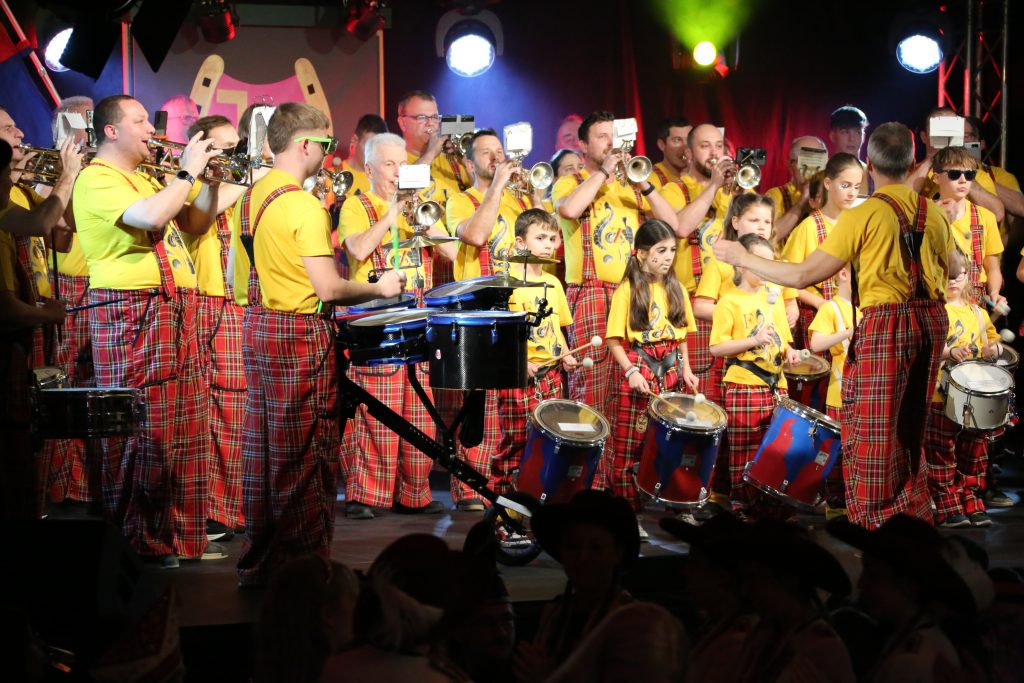 Gegen Ende spielte unsere Hauskapelle Turfcombo altbekannte Fasnachtskracher, während nochmals alle Auftretenden unserer Prunk- und Fremdensitzungen zum großen Finale die Bühne betraten.