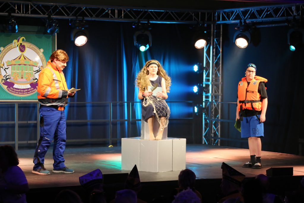 Mit ihrer Büttenrede „Iffezheim – zwischen Rheinfall und Loreley“ sorgten „Schleusenwärter“ Andreas Freund gemeinsam mit seinen Söhnen Benjamin (als Bademeister) und Jonathan (als Loreley) für beste Unterhaltung. Mit viel Wortwitz nahmen sie Dorfgeschehen, Politik und Weltgeschehen humorvoll aufs Korn. Ihre musikalische Einlage „Wo kann’s schöner sein als in Iffezheim“ animierte das Publikum immer wieder zum Mitsingen.